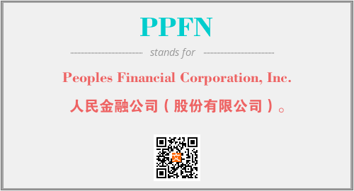 上述内容是“Peoples Financial Corporation, Inc.”作为“PPFN”的缩写,解释为“人民金融公司(股份有限公司)。”时的信息,以及英文缩略词PPFN所代表的英文单词,其对应的中文拼音、详细解释以及在英文中的流行度和相关分类、应用领域及应用示例等。
