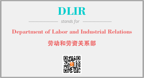 上述内容是“Department of Labor and Industrial Relations”作为“DLIR”的缩写,解释为“劳动和劳资关系部”时的信息,以及英文缩略词DLIR所代表的英文单词,其对应的中文拼音、详细解释以及在英文中的流行度和相关分类、应用领域及应用示例等。