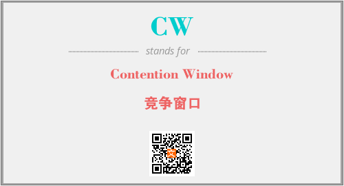 英文缩略词“CW”经常作为“Contention Window”的英文缩写来使用,中文表示:“竞争窗口”。本文将详细介绍英文缩写词CW所代表英文单词,其对应的中文拼音、详细解释以及在英语中的流行度。此外,还有关于缩略词CW的分类、应用领域及相关应用示例等。