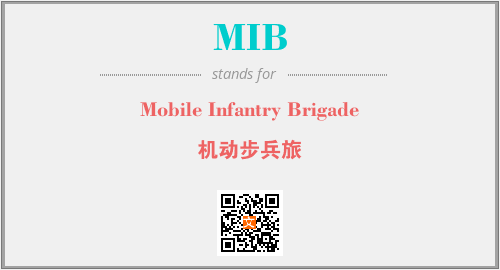 上述内容是“Mobile Infantry Brigade”作为“MIB”的缩写,解释为“机动步兵旅”时的信息,以及英文缩略词MIB所代表的英文单词,其对应的中文拼音、详细解释以及在英文中的流行度和相关分类、应用领域及应用示例等。