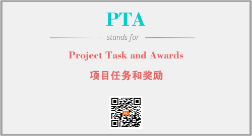 上述内容是“Project Task and Awards”作为“PTA”的缩写,解释为“项目任务和奖励”时的信息,以及英文缩略词PTA所代表的英文单词,其对应的中文拼音、详细解释以及在英文中的流行度和相关分类、应用领域及应用示例等。
