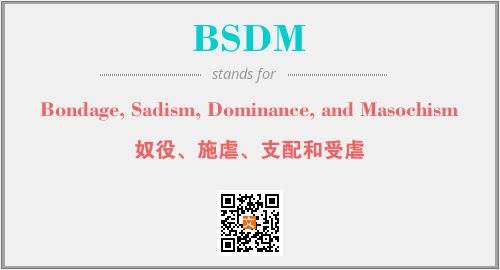 英文缩略词“BSDM”经常作为“Bondage, Sadism, Dominance, and Masochism”的英文缩写来使用,中文表示:“奴役、施虐、支配和受虐”。本文将详细介绍英文缩写词BSDM所代表英文单词,其对应的中文拼音、详细解释以及在英语中的流行度。此外,还有关于缩略词BSDM的分类、应用领域及相关应用示例等。