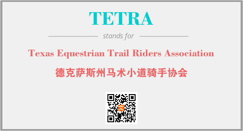 英文缩略词“TETRA”经常作为“Texas Equestrian Trail Riders Association”的英文缩写来使用,中文表示:“德克萨斯州马术小道骑手协会”。本文将详细介绍英文缩写词TETRA所代表英文单词,其对应的中文拼音、详细解释以及在英语中的流行度。此外,还有关于缩略词TETRA的分类、应用领域及相关应用示例等。