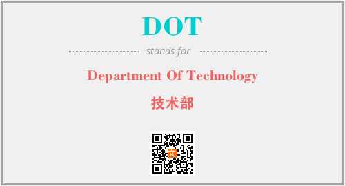 英文缩略词“DOT”经常作为“Department Of Technology”的英文缩写来使用,中文表示:“技术部”。本文将详细介绍英文缩写词DOT所代表英文单词,其对应的中文拼音、详细解释以及在英语中的流行度。此外,还有关于缩略词DOT的分类、应用领域及相关应用示例等。