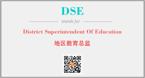 英文缩略词“DSE”经常作为“District Superintendent Of Education”的英文缩写来使用,中文表示:“地区教育总监”。本文将详细介绍英文缩写词DSE所代表英文单词,其对应的中文拼音、详细解释以及在英语中的流行度。此外,还有关于缩略词DSE的分类、应用领域及相关应用示例等。