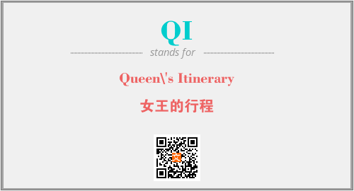 上述内容是“Queen\'s Itinerary”作为“QI”的缩写,解释为“女王的行程”时的信息,以及英文缩略词QI所代表的英文单词,其对应的中文拼音、详细解释以及在英文中的流行度和相关分类、应用领域及应用示例等。
