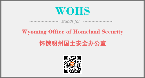 上述内容是“Wyoming Office of Homeland Security”作为“WOHS”的缩写,解释为“怀俄明州国土安全办公室”时的信息,以及英文缩略词WOHS所代表的英文单词,其对应的中文拼音、详细解释以及在英文中的流行度和相关分类、应用领域及应用示例等。