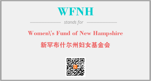 上述内容是“Women\'s Fund of New Hampshire”作为“WFNH”的缩写,解释为“新罕布什尔州妇女基金会”时的信息,以及英文缩略词WFNH所代表的英文单词,其对应的中文拼音、详细解释以及在英文中的流行度和相关分类、应用领域及应用示例等。