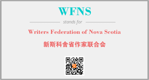 上述内容是“Writers Federation of Nova Scotia”作为“WFNS”的缩写,解释为“新斯科舍省作家联合会”时的信息,以及英文缩略词WFNS所代表的英文单词,其对应的中文拼音、详细解释以及在英文中的流行度和相关分类、应用领域及应用示例等。