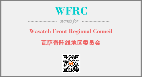 上述内容是“Wasatch Front Regional Council”作为“WFRC”的缩写,解释为“瓦萨奇阵线地区委员会”时的信息,以及英文缩略词WFRC所代表的英文单词,其对应的中文拼音、详细解释以及在英文中的流行度和相关分类、应用领域及应用示例等。
