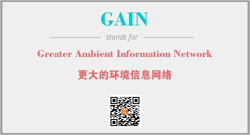 英文缩略词“GAIN”经常作为“Greater Ambient Information Network”的英文缩写来使用,中文表示:“更大的环境信息网络”。本文将详细介绍英文缩写词GAIN所代表英文单词,其对应的中文拼音、详细解释以及在英语中的流行度。此外,还有关于缩略词GAIN的分类、应用领域及相关应用示例等。