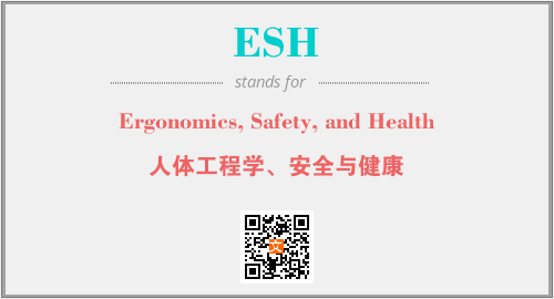 上述内容是“Ergonomics, Safety, and Health”作为“ESH”的缩写,解释为“人体工程学、安全与健康”时的信息,以及英文缩略词ESH所代表的英文单词,其对应的中文拼音、详细解释以及在英文中的流行度和相关分类、应用领域及应用示例等。