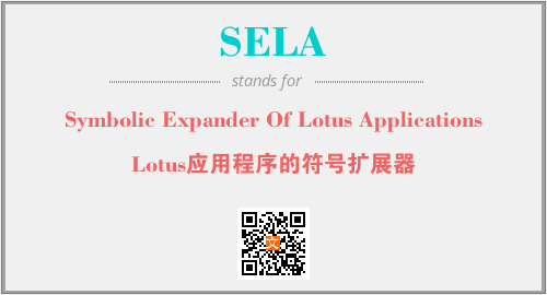 上述内容是“Symbolic Expander Of Lotus Applications”作为“SELA”的缩写,解释为“Lotus应用程序的符号扩展器”时的信息,以及英文缩略词SELA所代表的英文单词,其对应的中文拼音、详细解释以及在英文中的流行度和相关分类、应用领域及应用示例等。