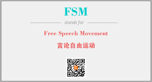 上述内容是“Free Speech Movement”作为“FSM”的缩写,解释为“言论自由运动”时的信息,以及英文缩略词FSM所代表的英文单词,其对应的中文拼音、详细解释以及在英文中的流行度和相关分类、应用领域及应用示例等。