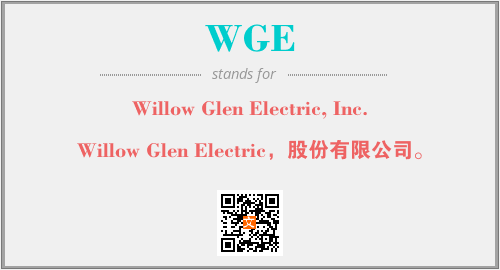上述内容是“Willow Glen Electric, Inc.”作为“WGE”的缩写,解释为“Willow Glen Electric,股份有限公司。”时的信息,以及英文缩略词WGE所代表的英文单词,其对应的中文拼音、详细解释以及在英文中的流行度和相关分类、应用领域及应用示例等。