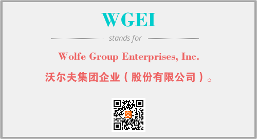 上述内容是“Wolfe Group Enterprises, Inc.”作为“WGEI”的缩写,解释为“沃尔夫集团企业(股份有限公司)。”时的信息,以及英文缩略词WGEI所代表的英文单词,其对应的中文拼音、详细解释以及在英文中的流行度和相关分类、应用领域及应用示例等。
