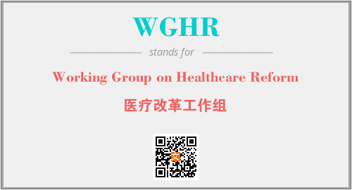 上述内容是“Working Group on Healthcare Reform”作为“WGHR”的缩写,解释为“医疗改革工作组”时的信息,以及英文缩略词WGHR所代表的英文单词,其对应的中文拼音、详细解释以及在英文中的流行度和相关分类、应用领域及应用示例等。
