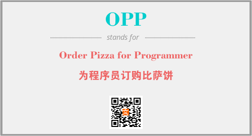 英文缩略词“OPP”经常作为“Order Pizza for Programmer”的英文缩写来使用,中文表示:“为程序员订购比萨饼”。本文将详细介绍英文缩写词OPP所代表英文单词,其对应的中文拼音、详细解释以及在英语中的流行度。此外,还有关于缩略词OPP的分类、应用领域及相关应用示例等。