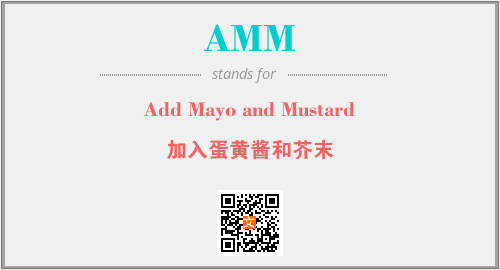 英文缩略词“AMM”经常作为“Add Mayo and Mustard”的英文缩写来使用,中文表示:“加入蛋黄酱和芥末”。本文将详细介绍英文缩写词AMM所代表英文单词,其对应的中文拼音、详细解释以及在英语中的流行度。此外,还有关于缩略词AMM的分类、应用领域及相关应用示例等。