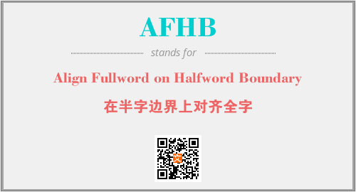 上述内容是“Align Fullword on Halfword Boundary”作为“AFHB”的缩写,解释为“在半字边界上对齐全字”时的信息,以及英文缩略词AFHB所代表的英文单词,其对应的中文拼音、详细解释以及在英文中的流行度和相关分类、应用领域及应用示例等。