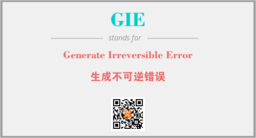 上述内容是“Generate Irreversible Error”作为“GIE”的缩写,解释为“生成不可逆错误”时的信息,以及英文缩略词GIE所代表的英文单词,其对应的中文拼音、详细解释以及在英文中的流行度和相关分类、应用领域及应用示例等。