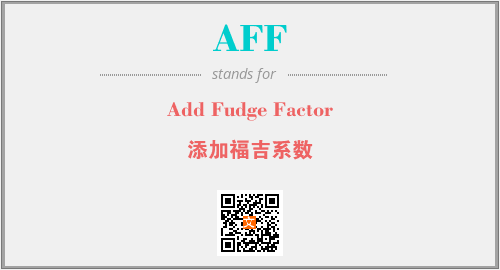 上述内容是“Add Fudge Factor”作为“AFF”的缩写,解释为“添加福吉系数”时的信息,以及英文缩略词AFF所代表的英文单词,其对应的中文拼音、详细解释以及在英文中的流行度和相关分类、应用领域及应用示例等。