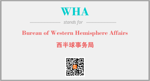 以上为Bureau of Western Hemisphere Affairs英文缩略词WHA的中文解释,以及该英文缩写在英语的流行度、分类和应用领域方面的信息。