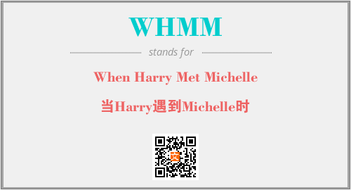上述内容是“When Harry Met Michelle”作为“WHMM”的缩写,解释为“当Harry遇到Michelle时”时的信息,以及英文缩略词WHMM所代表的英文单词,其对应的中文拼音、详细解释以及在英文中的流行度和相关分类、应用领域及应用示例等。