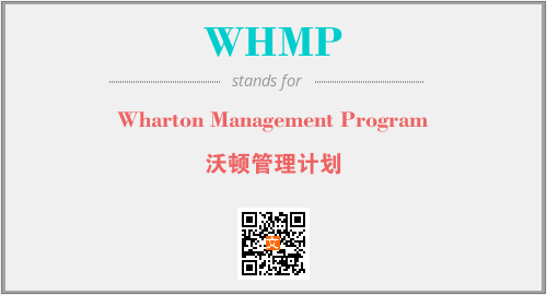 英文缩略词“WHMP”经常作为“Wharton Management Program”的英文缩写来使用,中文表示:“沃顿管理计划”。本文将详细介绍英文缩写词WHMP所代表英文单词,其对应的中文拼音、详细解释以及在英语中的流行度。此外,还有关于缩略词WHMP的分类、应用领域及相关应用示例等。