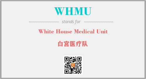 上述内容是“White House Medical Unit”作为“WHMU”的缩写,解释为“白宫医疗队”时的信息,以及英文缩略词WHMU所代表的英文单词,其对应的中文拼音、详细解释以及在英文中的流行度和相关分类、应用领域及应用示例等。