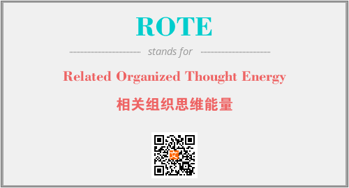上述内容是“Related Organized Thought Energy”作为“ROTE”的缩写,解释为“相关组织思维能量”时的信息,以及英文缩略词ROTE所代表的英文单词,其对应的中文拼音、详细解释以及在英文中的流行度和相关分类、应用领域及应用示例等。
