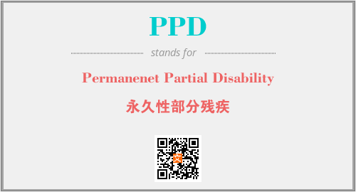 英文缩略词“PPD”经常作为“Permanenet Partial Disability”的英文缩写来使用,中文表示:“永久性部分残疾”。本文将详细介绍英文缩写词PPD所代表英文单词,其对应的中文拼音、详细解释以及在英语中的流行度。此外,还有关于缩略词PPD的分类、应用领域及相关应用示例等。