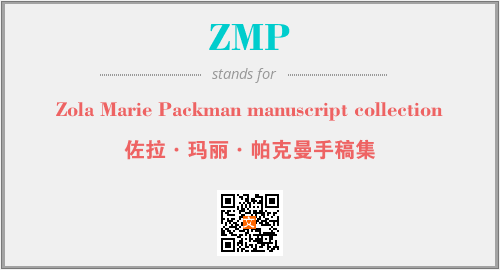 上述内容是“Zola Marie Packman manuscript collection”作为“ZMP”的缩写,解释为“佐拉·玛丽·帕克曼手稿集”时的信息,以及英文缩略词ZMP所代表的英文单词,其对应的中文拼音、详细解释以及在英文中的流行度和相关分类、应用领域及应用示例等。