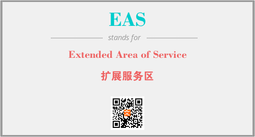 英文缩略词“EAS”经常作为“Extended Area of Service”的英文缩写来使用,中文表示:“扩展服务区”。本文将详细介绍英文缩写词EAS所代表英文单词,其对应的中文拼音、详细解释以及在英语中的流行度。此外,还有关于缩略词EAS的分类、应用领域及相关应用示例等。