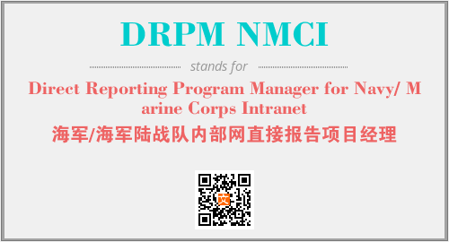 上述内容是“Direct Reporting Program Manager for Navy/ Marine Corps Intranet”作为“DRPM NMCI”的缩写,解释为“海军/海军陆战队内部网直接报告项目经理”时的信息,以及英文缩略词DRPM NMCI所代表的英文单词,其对应的中文拼音、详细解释以及在英文中的流行度和相关分类、应用领域及应用示例等。