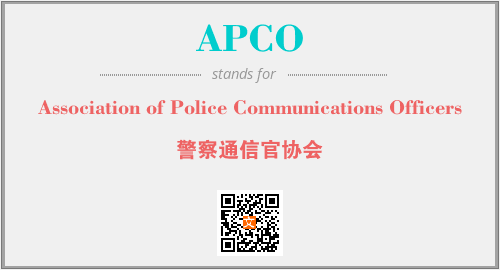 上述内容是“Association of Police Communications Officers”作为“APCO”的缩写,解释为“警察通信官协会”时的信息,以及英文缩略词APCO所代表的英文单词,其对应的中文拼音、详细解释以及在英文中的流行度和相关分类、应用领域及应用示例等。