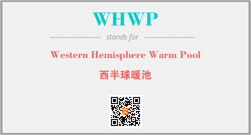 英文缩略词“WHWP”经常作为“Western Hemisphere Warm Pool”的英文缩写来使用,中文表示:“西半球暖池”。本文将详细介绍英文缩写词WHWP所代表英文单词,其对应的中文拼音、详细解释以及在英语中的流行度。此外,还有关于缩略词WHWP的分类、应用领域及相关应用示例等。