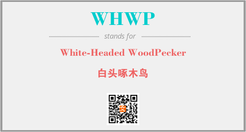 英文缩略词“WHWP”经常作为“White-Headed WoodPecker”的英文缩写来使用,中文表示:“白头啄木鸟”。本文将详细介绍英文缩写词WHWP所代表英文单词,其对应的中文拼音、详细解释以及在英语中的流行度。此外,还有关于缩略词WHWP的分类、应用领域及相关应用示例等。