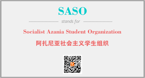 上述内容是“Socialist Azania Student Organization”作为“SASO”的缩写,解释为“阿扎尼亚社会主义学生组织”时的信息,以及英文缩略词SASO所代表的英文单词,其对应的中文拼音、详细解释以及在英文中的流行度和相关分类、应用领域及应用示例等。