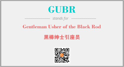 英文缩略词“GUBR”经常作为“Gentleman Usher of the Black Rod”的英文缩写来使用,中文表示:“黑棒绅士引座员”。本文将详细介绍英文缩写词GUBR所代表英文单词,其对应的中文拼音、详细解释以及在英语中的流行度。此外,还有关于缩略词GUBR的分类、应用领域及相关应用示例等。