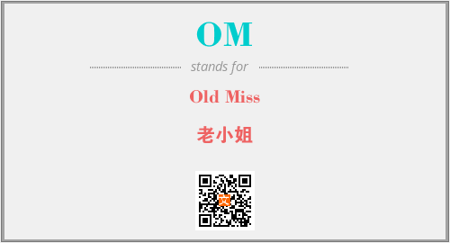 英文缩略词“OM”经常作为“Old Miss”的英文缩写来使用,中文表示:“老小姐”。本文将详细介绍英文缩写词OM所代表英文单词,其对应的中文拼音、详细解释以及在英语中的流行度。此外,还有关于缩略词OM的分类、应用领域及相关应用示例等。