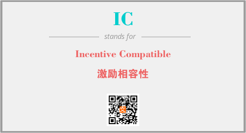 上述内容是“Incentive Compatible”作为“IC”的缩写,解释为“激励相容性”时的信息,以及英文缩略词IC所代表的英文单词,其对应的中文拼音、详细解释以及在英文中的流行度和相关分类、应用领域及应用示例等。