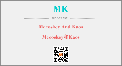 以上为Mccoskey And Kaos英文缩略词MK的中文解释,以及该英文缩写在英语的流行度、分类和应用领域方面的信息。