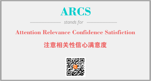 英文缩略词“ARCS”经常作为“Attention Relevance Confidence Satisfiction”的英文缩写来使用,中文表示:“注意相关性信心满意度”。本文将详细介绍英文缩写词ARCS所代表英文单词,其对应的中文拼音、详细解释以及在英语中的流行度。此外,还有关于缩略词ARCS的分类、应用领域及相关应用示例等。
