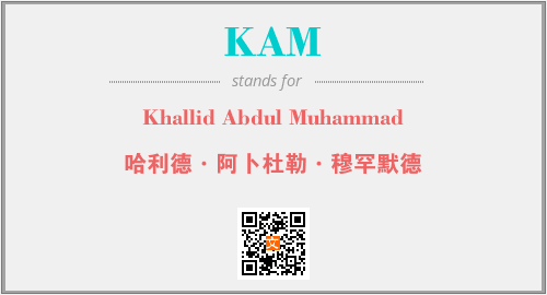 英文缩略词“KAM”经常作为“Khallid Abdul Muhammad”的英文缩写来使用,中文表示:“哈利德·阿卜杜勒·穆罕默德”。本文将详细介绍英文缩写词KAM所代表英文单词,其对应的中文拼音、详细解释以及在英语中的流行度。此外,还有关于缩略词KAM的分类、应用领域及相关应用示例等。
