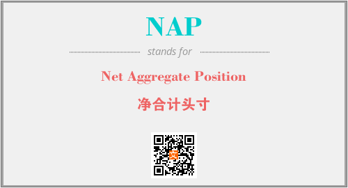 上述内容是“Net Aggregate Position”作为“NAP”的缩写,解释为“净合计头寸”时的信息,以及英文缩略词NAP所代表的英文单词,其对应的中文拼音、详细解释以及在英文中的流行度和相关分类、应用领域及应用示例等。