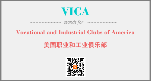 英文缩略词“VICA”经常作为“Vocational and Industrial Clubs of America”的英文缩写来使用,中文表示:“美国职业和工业俱乐部”。本文将详细介绍英文缩写词VICA所代表英文单词,其对应的中文拼音、详细解释以及在英语中的流行度。此外,还有关于缩略词VICA的分类、应用领域及相关应用示例等。