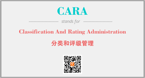 英文缩略词“CARA”经常作为“Classification And Rating Administration”的英文缩写来使用,中文表示:“分类和评级管理”。本文将详细介绍英文缩写词CARA所代表英文单词,其对应的中文拼音、详细解释以及在英语中的流行度。此外,还有关于缩略词CARA的分类、应用领域及相关应用示例等。
