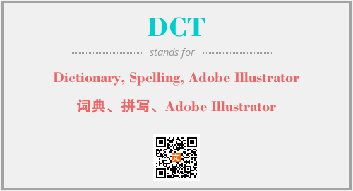 英文缩略词“DCT”经常作为“Dictionary, Spelling, Adobe Illustrator”的英文缩写来使用,中文表示:“词典、拼写、Adobe Illustrator”。本文将详细介绍英文缩写词DCT所代表英文单词,其对应的中文拼音、详细解释以及在英语中的流行度。此外,还有关于缩略词DCT的分类、应用领域及相关应用示例等。