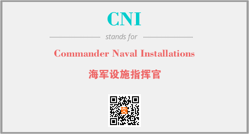 上述内容是“Commander Naval Installations”作为“CNI”的缩写,解释为“海军设施指挥官”时的信息,以及英文缩略词CNI所代表的英文单词,其对应的中文拼音、详细解释以及在英文中的流行度和相关分类、应用领域及应用示例等。